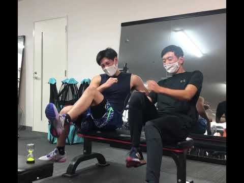 トレーニング終了時に微かな余力を見つけて、キューピー1分間腹筋トレーニング。