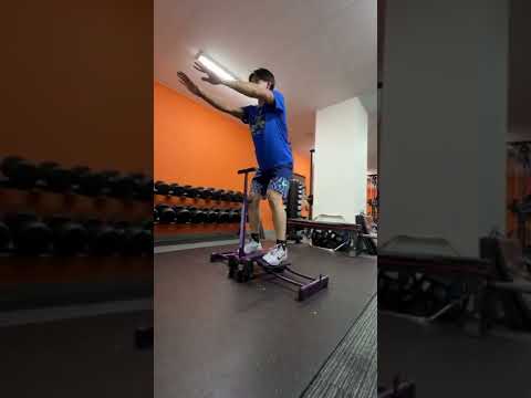 国民的運動器具の中央を嵩上げし、勾配をキツくした状態でスクワット。